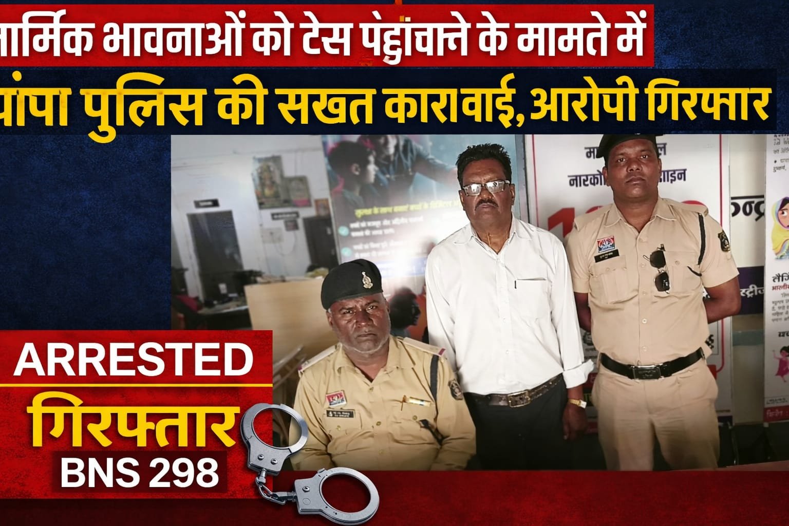जांजगीर-चांपा। धार्मिक भावनाओं को ठेस पहुंचाने के एक मामले में थाना चांपा पुलिस ने त्वरित कार्रवाई करते हुए आरोपी को गिरफ्तार कर न्यायिक रिमांड पर भेज दिया है। आरोपी के विरुद्ध धारा 298 बीएनएस के तहत प्रकरण दर्ज किया गया है।