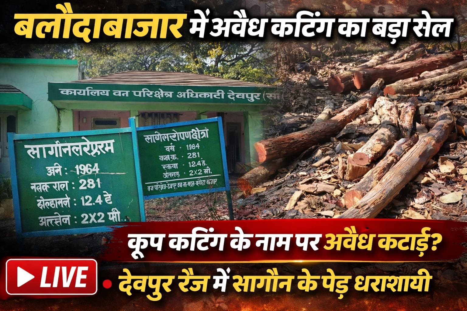 बलौदाबाजार। जिले से जंगलों की अवैध कटाई का एक गंभीर मामला सामने आया है। आरोप है कि कूप कटिंग के नाम पर सागौन के हरे-भरे पेड़ों की बड़े पैमाने पर कटाई की जा रही है। मामला वन परिक्षेत्र देवपुर रेंज के कक्ष क्रमांक 281 का बताया जा रहा है।