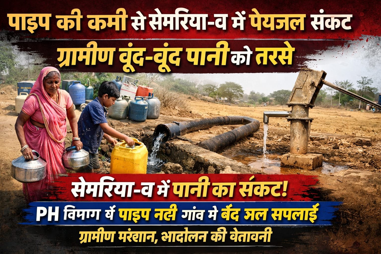 भाटापारा। विकासखंड के ग्राम पंचायत सेमरिया-ब में इन दिनों पेयजल की गंभीर समस्या उत्पन्न हो गई है। पीएचई विभाग (लोक स्वास्थ्य यांत्रिकी विभाग) में पाइप की कमी के कारण क्षतिग्रस्त पाइपलाइन की मरम्मत नहीं हो पा रही है, जिससे गांव में पानी की आपूर्ति बाधित हो गई है और ग्रामीणों को भारी परेशानियों का सामना करना पड़ रहा है।