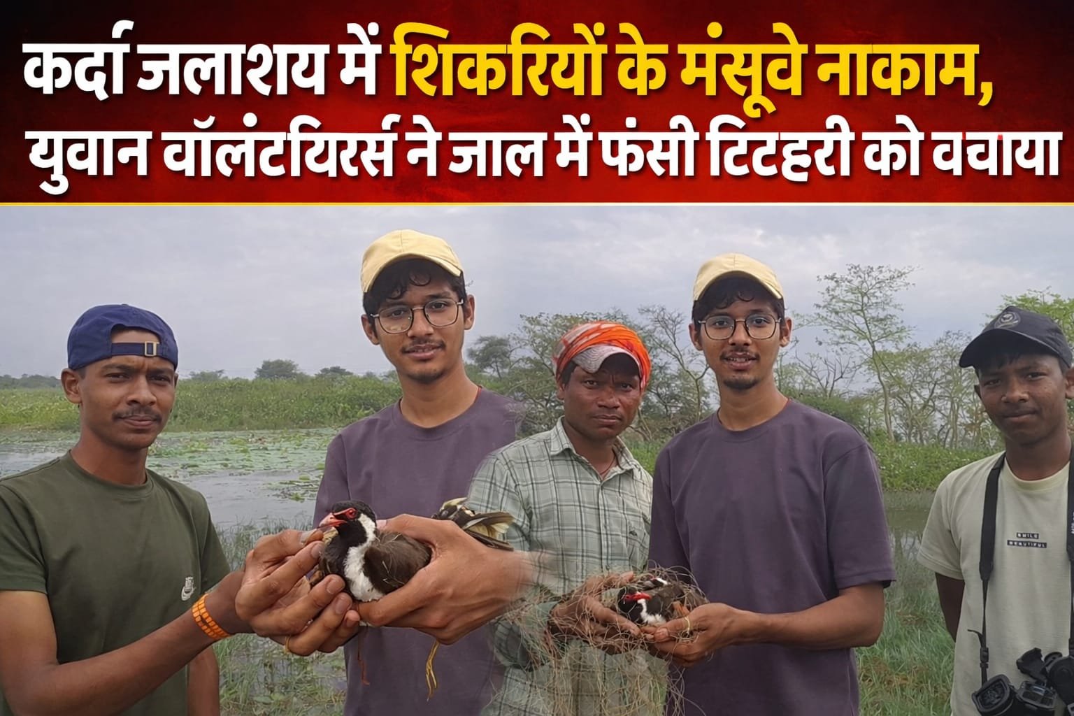 बलौदाबाजार। वन विभाग द्वारा संचालित युवान वॉलंटियर्स प्रोग्राम के तहत कर्दा जलाशय में चल रहे पक्षी सर्वेक्षण के दौरान वॉलंटियर्स ने सराहनीय कार्य करते हुए शिकारियों के मंसूबों को नाकाम कर दिया। जाल में फंसी एक टिटहरी को सुरक्षित बाहर निकालकर उसकी जान बचाई गई।
