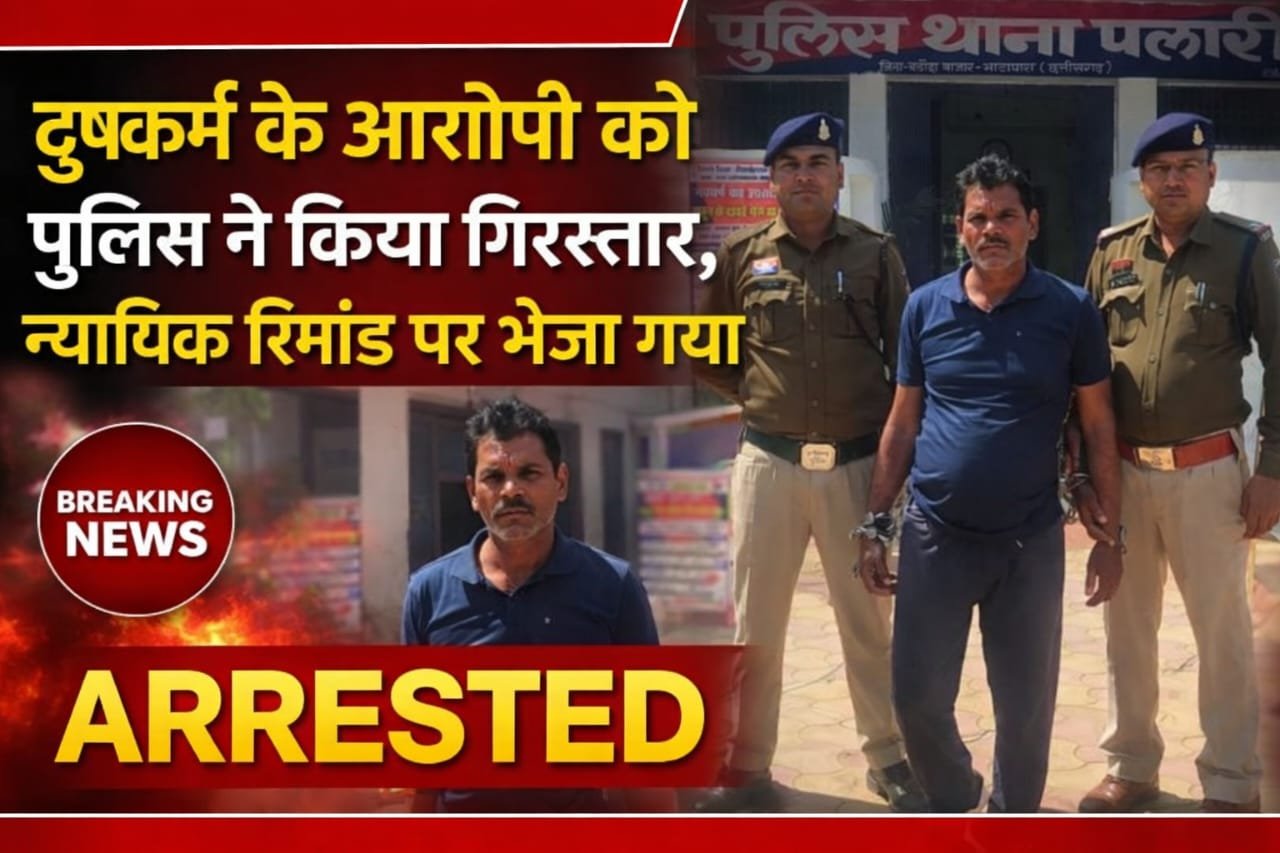 पलारी। थाना पलारी क्षेत्र में दुष्कर्म के एक मामले में पुलिस ने त्वरित कार्रवाई करते हुए आरोपी को गिरफ्तार कर न्यायिक रिमांड पर भेज दिया है।